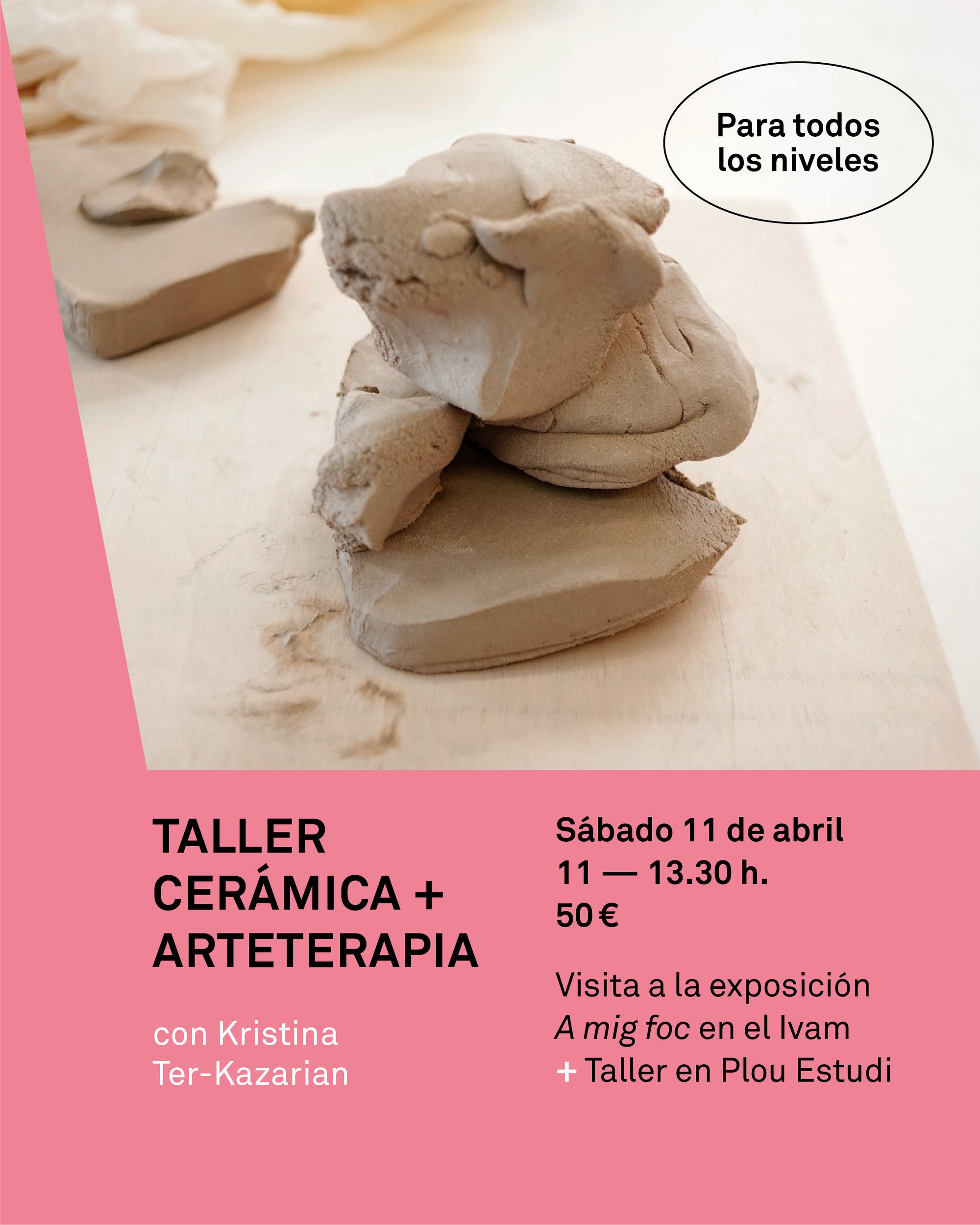 Os citaremos a las 11h en el Ivam (Museo valenciano de arte moderno) para ver juntas la exposición “A mig foc” y después iremos a Plou a mancharnos las manos de barro.